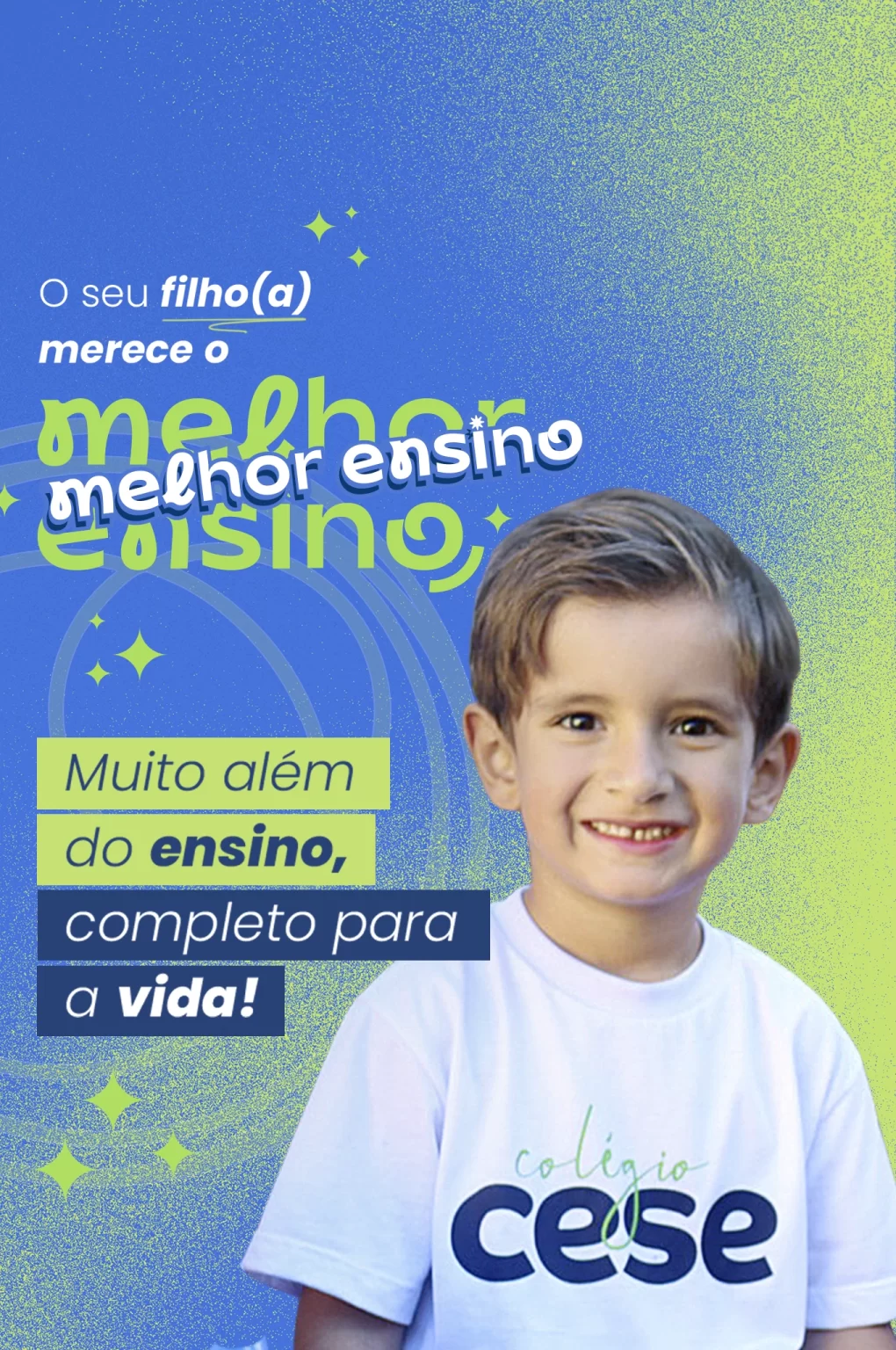 No Colégio CESE, a jornada do aprendizado começa com a magia da descoberta! Em Itabira, oferecemos um ambiente acolhedor e estimulante para os pequenos exploradores, onde a curiosidade é celebrada e o desenvolvimento integral floresce através de atividades lúdicas e pedagógicas cuidadosamente planejadas. Aqui, seus filhos darão os primeiros passos rumo a um futuro brilhante, cultivando alegria, confiança e amor pelo conhecimento em cada nova experiência.